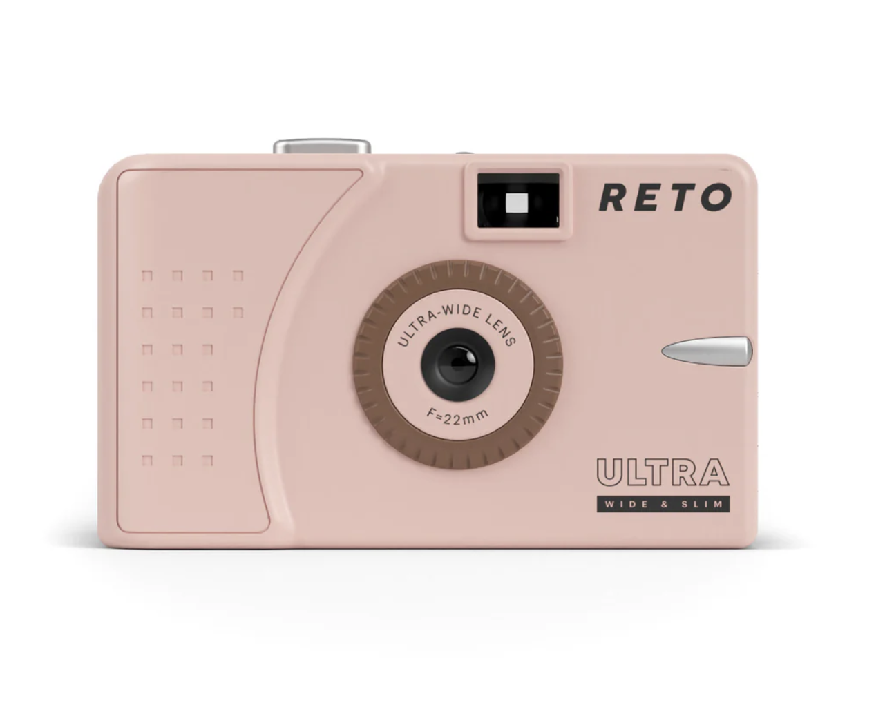 “RETO Ultra Wide & Slim is a slim and lightweight 35mm film camera which features a ultra-wide lens of 22mm. It is pocketable fun camera to bring along to all parties and celebrations. The camera is available in seven voguish colours.”