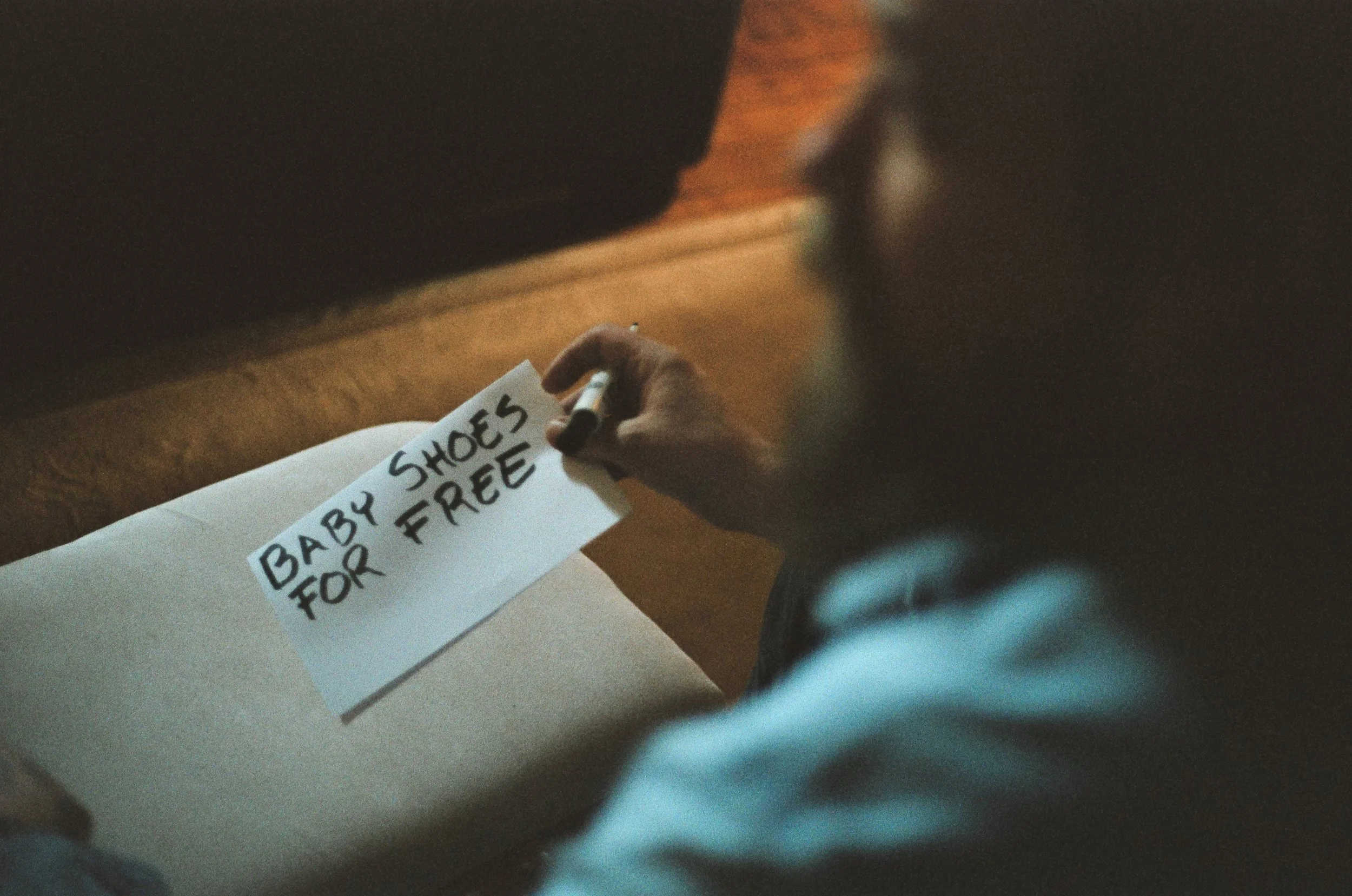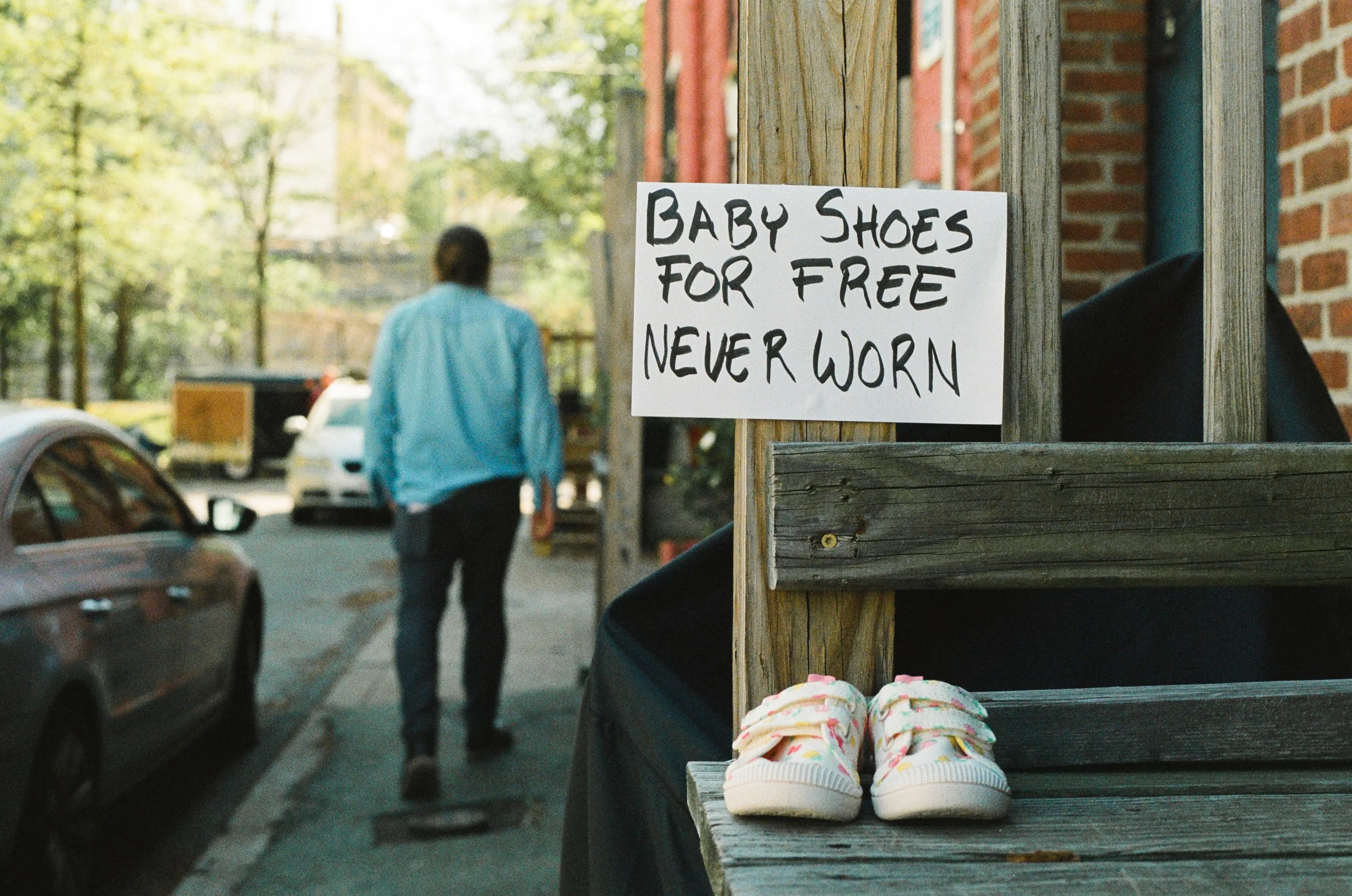 PHOTO 1: “A piece of paper says ‘Baby Shoes, For Free”